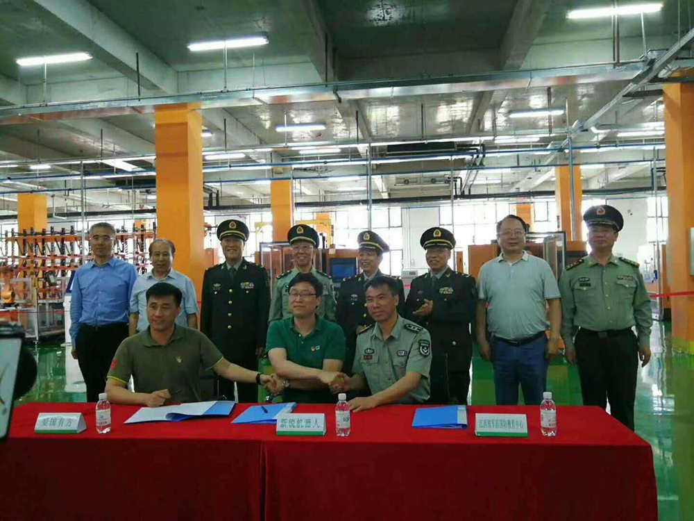公司董事長黃杰在穆振河、金培昌、方文生、王行惠等四位少將的見證下與山東新銳智能機器人有限公司簽署國防機器人項目合作協(xié)議。