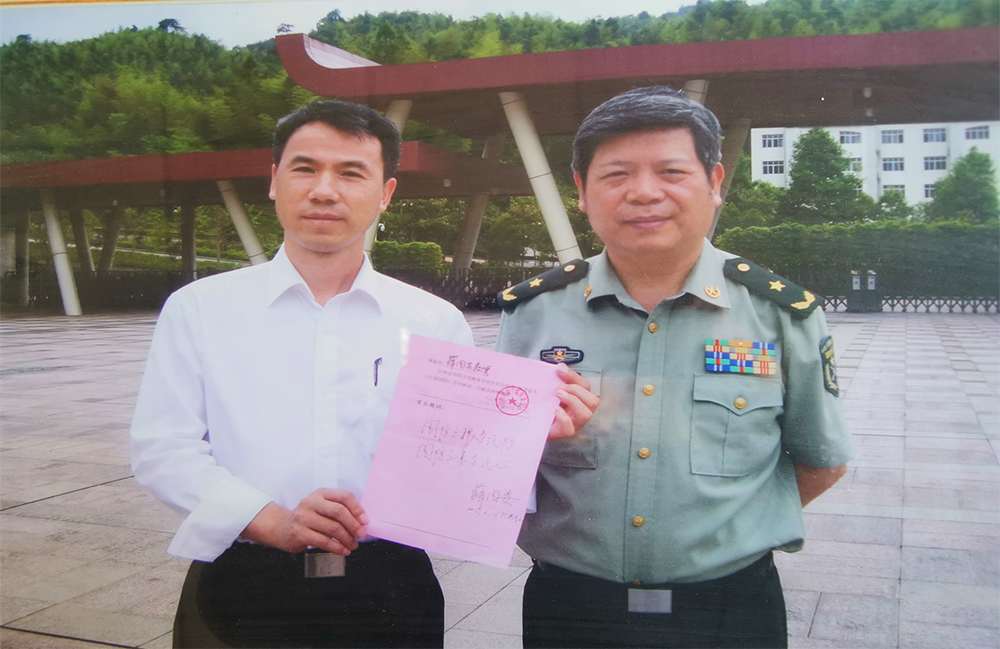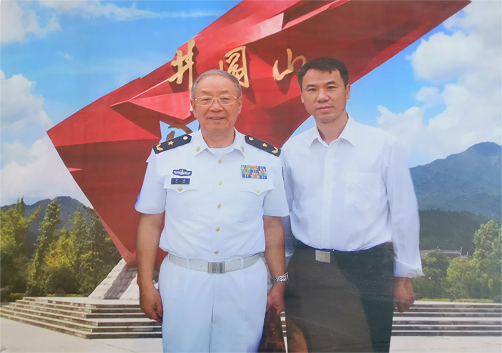 公司董事長黃杰與簽約顧問、國防大學戰(zhàn)略教研部副主任薛國安少將在井岡山合影。